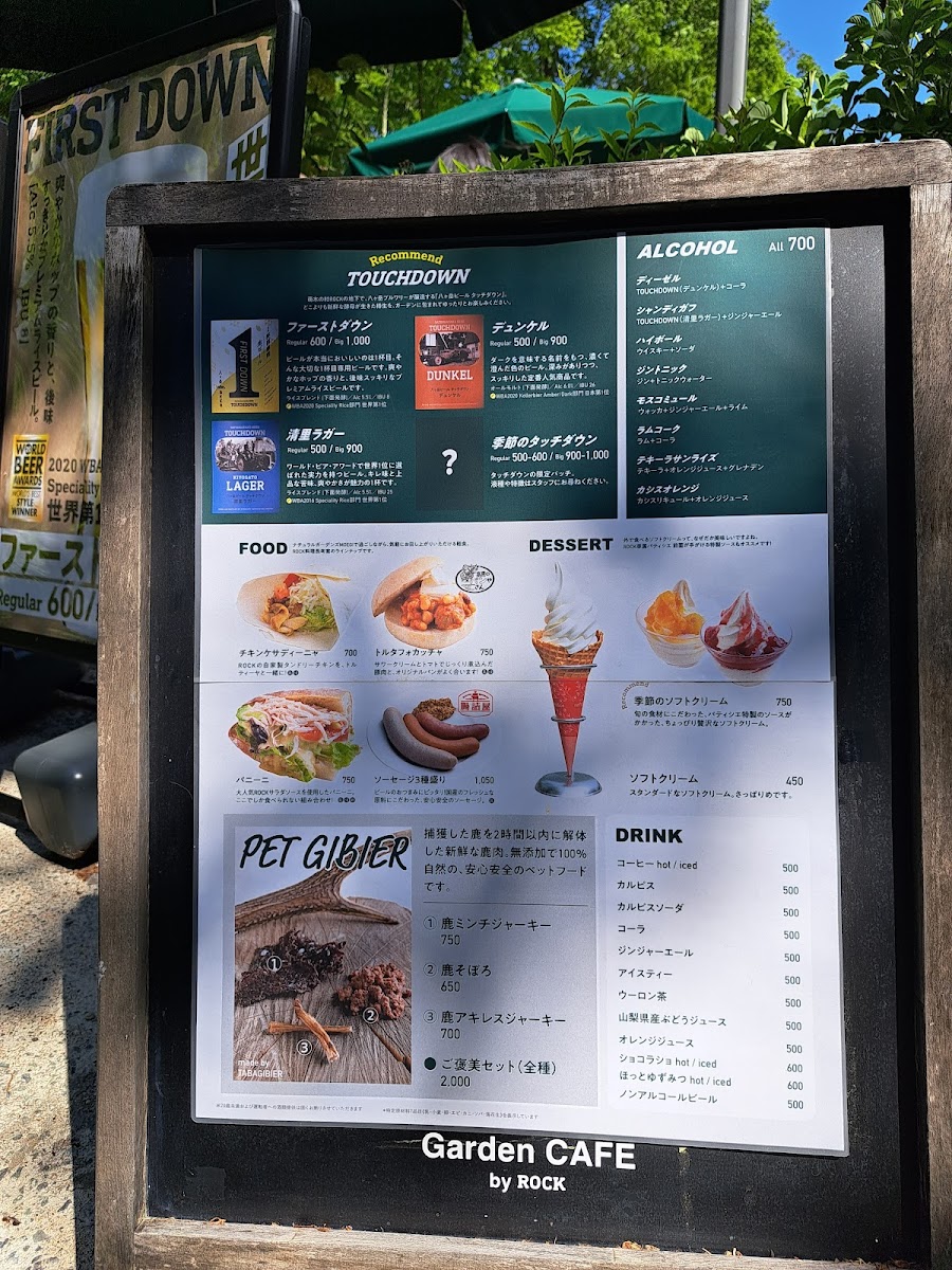 Welcome to 萌木の村ガーデンカフェbyROCK, a charming café nestled in the beautiful Hokuto region of Japan. Here, the menu is a delightful fusion of seasonal flavors and artisanal craftsmanship. Start your experience with their renowned ファーストダウン ビール, a premium rice beer bursting with a refreshing hop aroma. For those seeking something different, the seasonal TOUCHDOWN variations offer unique delights—ask the knowledgeable staff for recommendations!